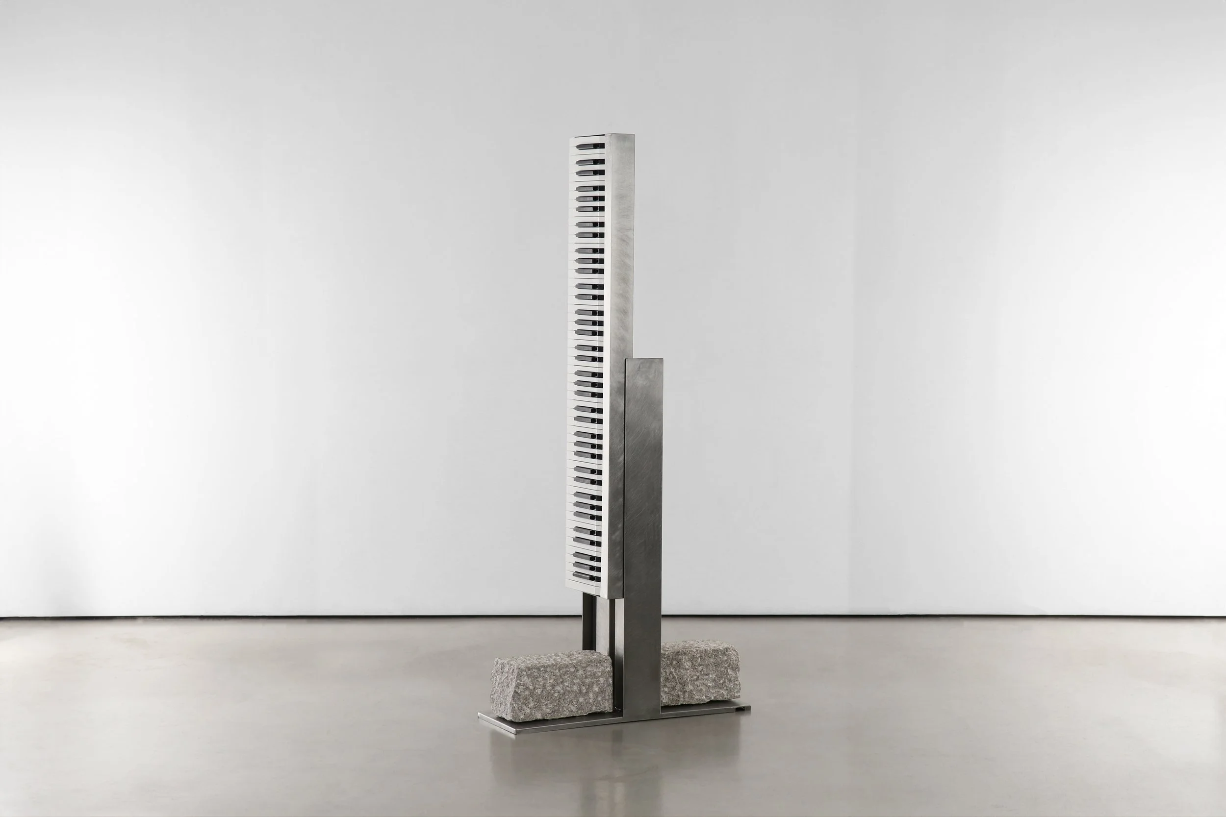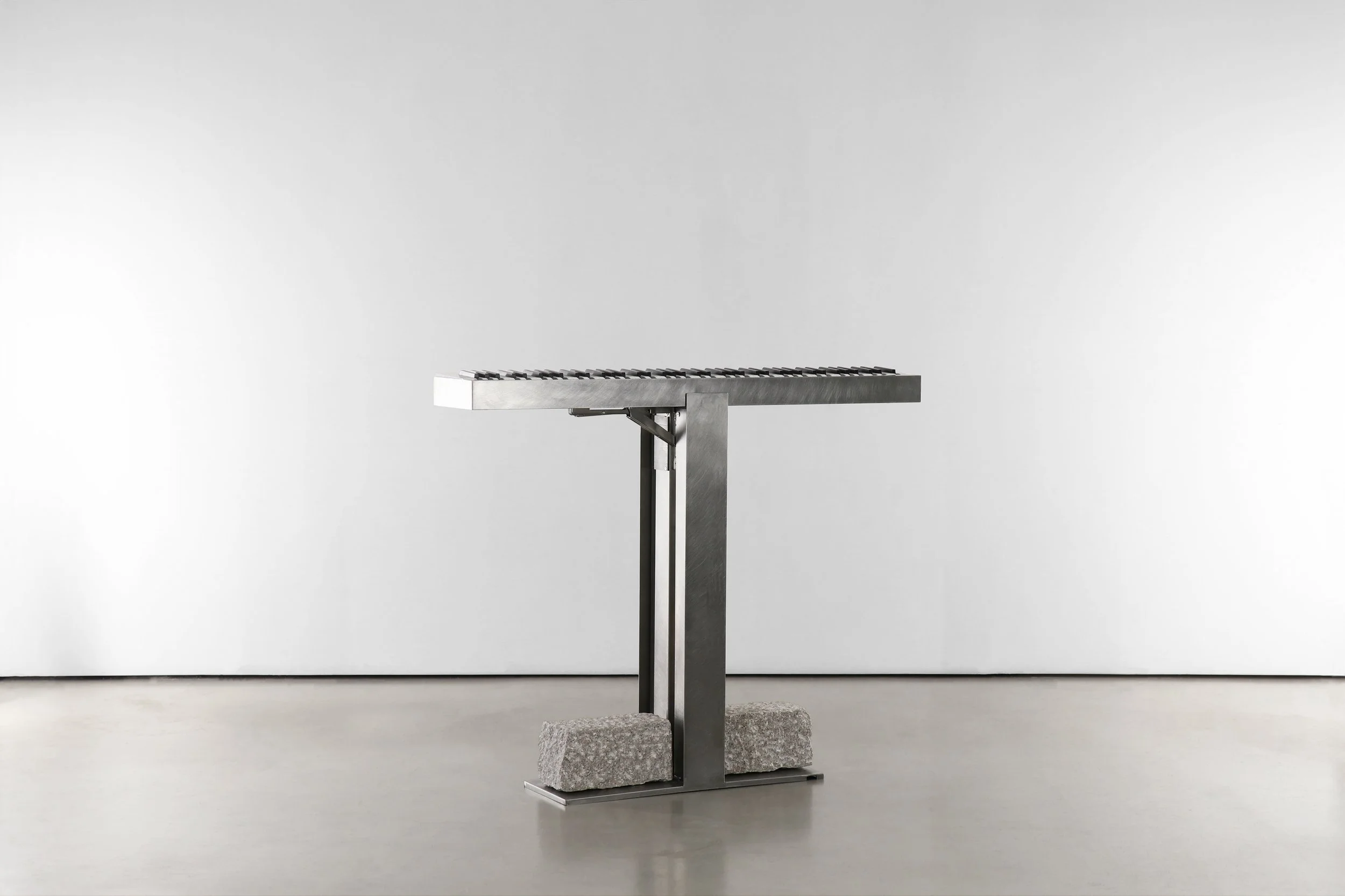 Our Steel and Stone Piano has been updated with hidden inputs, a minimal hinge, and pink granite. This articulated sculptural and fully functional electronic piano is available now in a limited Edition of 8 + 4 AP.